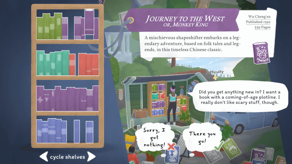 You meet regulars, students, retirees, creatives, each with their own preferences and quiet struggles. The game cleverly ties its storytelling to its mechanics: recommending a book becomes an act of empathy. When you get it right, the payoff isn’t just currency, it’s connection.