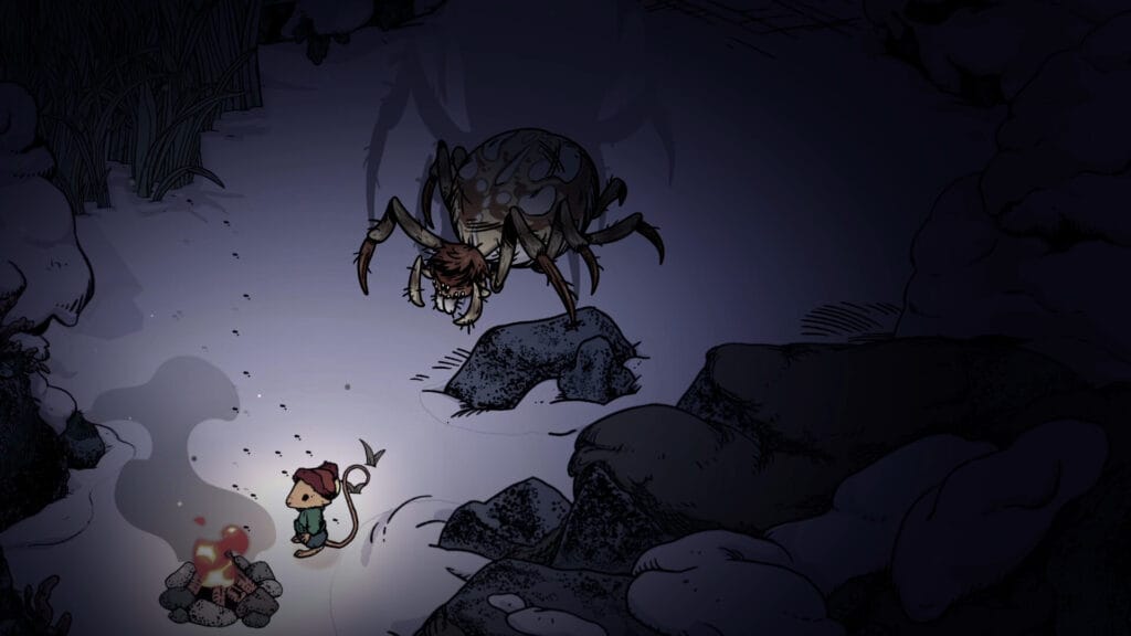 Artistically, Winter Burrow opts for stylization over realism. Characters and environments are rendered with soft proportions and muted winter palettes that emphasize atmosphere rather than detail density. Snow feels heavy, forests feel enclosed, and darkness carries weight, particularly during longer excursions away from shelter.